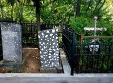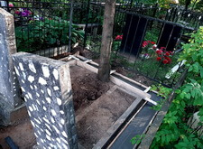 Затем наступил самый ответственный этап работы: монтаж ограждение. Работа по его установке опять-таки заняла достаточно долгое время, однако в результате чего по периметру могилы была установлена достаточно высокая статусная металлическая ограда, сразу же выделяющая место захоронения на фоне других участков. На фотографиях ниже представлен окончательный внешний вид могилы с разных ракурсов на момент завершения работ.