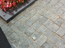 Мощение пола гранитной брусчаткой,